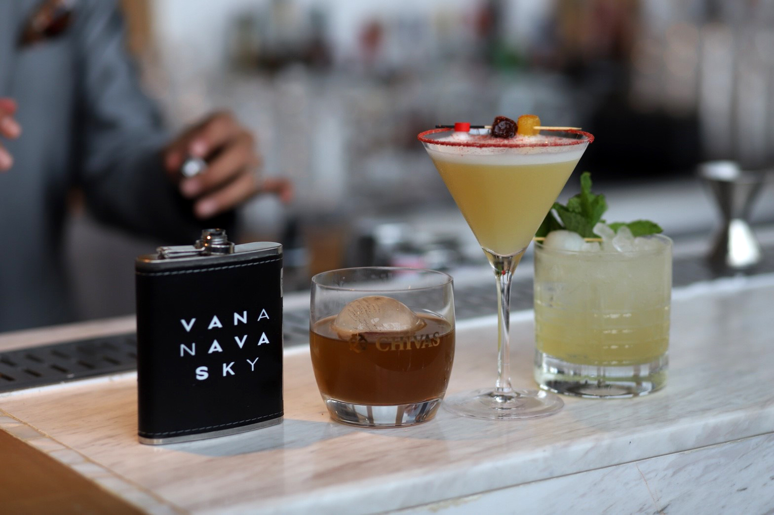 ไม่ใช่เพียงแค่ความสวยงามให้ได้เพลิดเพลินกันเท่านั้น เพราะที่นี่ยังมีโจเซฟ โบโรสกี้ Celebrity Mixologist ชื่อดังระดับโลกด้านการออกแบบเครื่องดื่ม ที่มีฝีมือและไอเดียการครีเอทค็อกเทลโดดเด่น แปลกใหม่ไม่เหมือนใครมาช่วยสร้างสรรค์เครื่องดื่มรวมถึง Signature Drink ร่วมกับทีม Mixologist ของวานา นาวา สกาย อีกด้วย โดยจะเน้นค็อกเทลรสชาติสดชื่น เลือกใช้วัตถุดิบที่เป็นผลไม้สดตามฤดูกาลและท้องถิ่น สมุนไพร และดอกไม้ เพื่อเพิ่มมิติให้ค็อกเทลมีรสชาติ และมีกลิ่นอายของทะเล รวมถึงความโดดเด่นของศาสตร์และศิลป์ โดยนำเสนอผ่านค็อกเทลใน 4 รูปแบบได้แก่ CLOUDS, TROPICAL, SOLID และ EASY ให้เลือกมากกว่า 20 เมนู ซึ่งแต่ละแบบจะมีเอกลักษณ์ สีสัน และความสวยงามที่แตกต่างกันออกไป