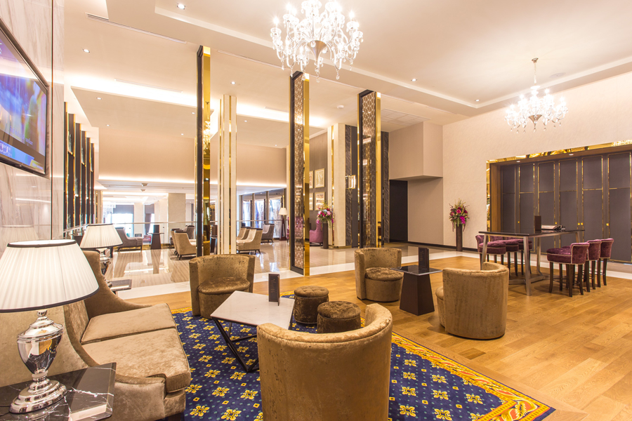 01. โรงภาพยนตร์สุดหรูระดับซุปเปอร์เฟิร์สคลาส ภายใต้แนวคิด The Prime Crystal Empire ที่จำลองบรรยากาศอาณาจักรคริสตัลผสมผสานความหรูหราของหินอ่อนและโลหะสีทอง เพิ่มความโดดเด่นด้วยดีไซน์ร่วมสมัยที่เน้นความคมชัดของเหลี่ยมมุมราวกับคริสตัลที่สะท้อนแสงไฟระยิบระยับ
