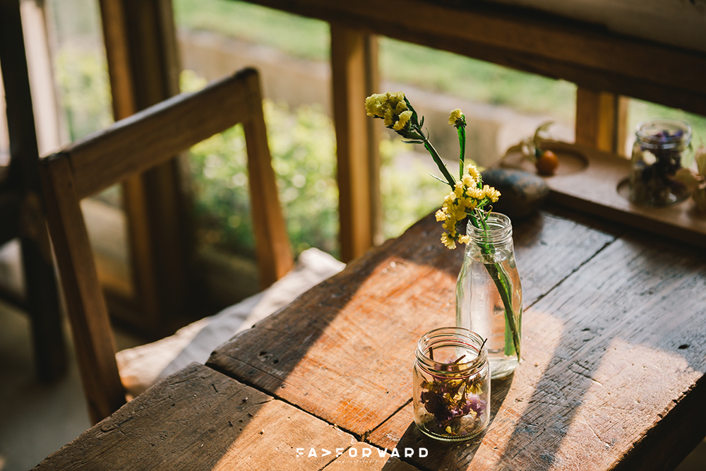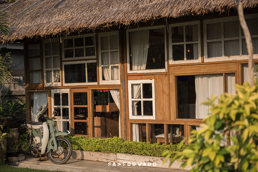 จากเดิมพื้นที่ตรงนี้คุณลุงตั้งใจจะสร้างเป็นที่พักอาศัยในแบบสไตล์ชาวเหนือแท้ๆ มีการเล่นสเต็ป และชานนั่งเล่นใต้ถุนบ้าน รวมถึงพื้นที่บริเวณเคาน์เตอร์ชงกาแฟเดิมถูกวางไว้ให้เป็นโรงรถเช่นกัน แต่ลูกชายนำมาดัดแปลงใหม่ให้กลายเป็นโซนทานกาแฟของร้าน ตกแต่งด้วยไม้เก่าทั้งหน้าต่างและบานประตู โดยมีพี่ชายที่เป็นสถาปนิกคอยช่วยออกแบบให้ทั้งหมด