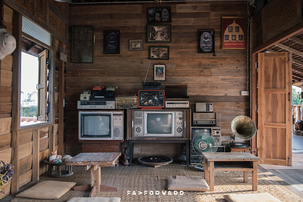 หลังจากได้ความหวานมาช่วยคลายความหิว คุณลุงชวนขึ้นไปดูยังที่นั่งชั้นสองของบริเวณบ้าน ได้ความรู้สึกไปอีกแบบกับการนั่งทานบนเสื่อ รอบๆ ตกแต่งด้วยของเก่าและของสะสมของบาริสต้า ที่คุณลุงแอบเอามาใส่แซมบ้างเล็กน้อย ตามแบบฉบับของคุณพ่ออารมณ์ดี