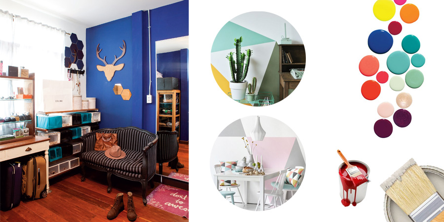ผนังห้องที่เรียบๆสามารถทำให้มีชีวิตชีวาได้ด้วยการทาสีสันสดใสลงไปในมุมใดมุมหนึ่งของห้อง โดยอาจเน้นเป็นสีสดๆสีเดียวหรือเพ้นท์เป็นลวดลายก็ช่วยให้บ้านน่าอยู่ได้ไม่เลวทีเดียว