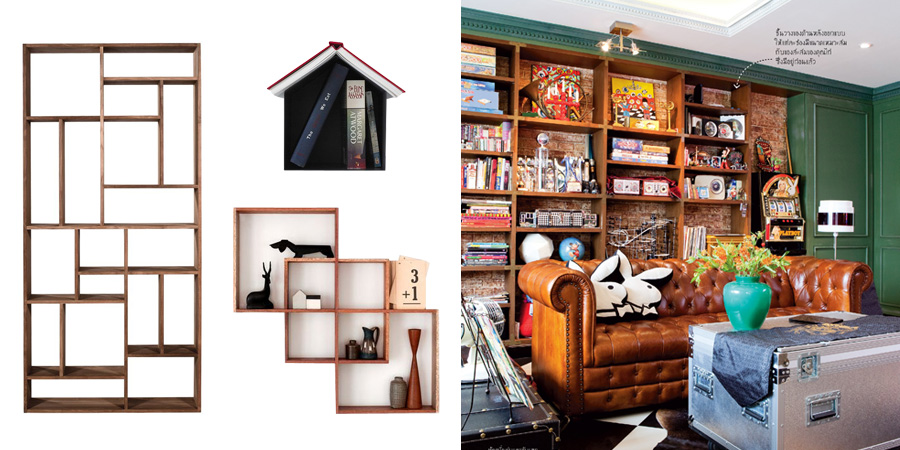 ผนังเปล่าๆบางทีทิ้งไว้ก็ไม่เกิดประโยชน์ นำ Bookshelf ดีไซน์สวยๆมาตั้ง แล้วนำหนังสือหรือข้าวของกระจุกกระจิกมาวางตกแต่ง นอกจากจะเป็นการแต่งผนังห้องแล้ว ยังสามรถใช้ประโยชน์ในการเก็บของได้อีกด้วย