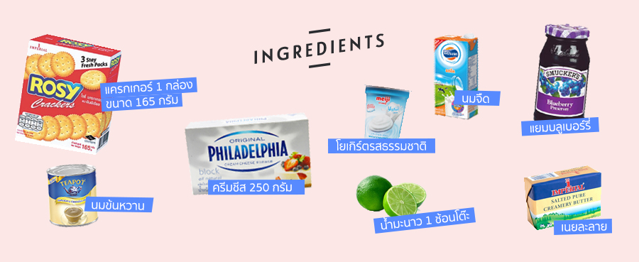 บลูเบอร์รี่ชีสพาย ขนมหวานยอดฮิตของคนที่เพิ่งหัดทำเบเกอร์รี่ กินแล้วอร่อยจนลืมนับแคลฯไปเลย ลองมาดูสูตรนี้ไม่ต้องใช้เตาอบหรืออุปกรณ์ใดๆ ให้ยุ่งยาก แค่มีตู้เย็นเท่านั้นพอ