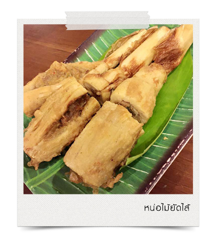 นอกจากออร์เดิร์ฟเมืองที่เข้าร้านอาหารล้านนา ต้องสั่งกันแทบทุกโต๊ะ อยากให้ลองหน่อไม้ยัดไส้ อีกหนึ่งเมนูของเชียงใหม่ที่คนรุ่นใหม่อาจไม่ค่อยได้กินบ่อยนัก แต่อร่อยล้ำ โดยนำหน่อไม้มายัดไส้หมูสับรสชาดคล้ายๆ ไส้อั่ว จากนั้นนำไปชุบแป้งทอด ลดความเปรี้ยวของหน่อไม้ลงนิดผสมกับรสชาดหมูที่ปรุงสำเร็จ กลายเป็นความกลมกล่อมที่สามารถหากินได้ที่ร้านเฮือนม่วนไจ๋ หรือร้านอาหารเมืองทั่วไปในเชียงใหม่เจ้า