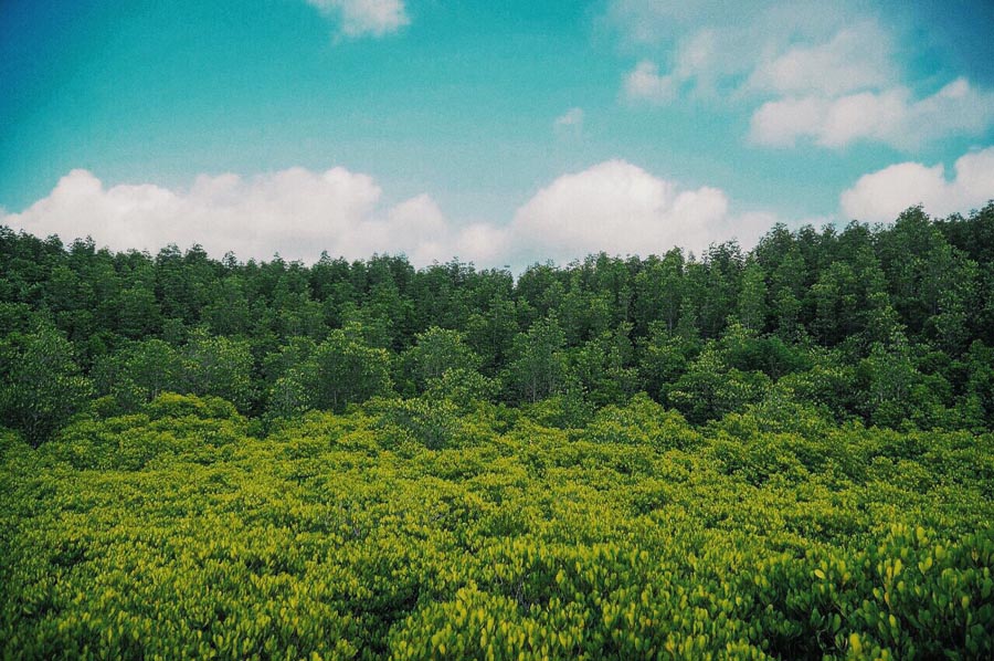 และนอกจากนั้น ทุ่งโปรงทอง ยังเชื่อมต่อด้วยสะพานไม้ไปยังบริเวณทางเดินธรรมชาติป่าชายเลนแสมผู้ ซึ่งบริเวณนี้เต็มไปด้วยพืชพันธ์หลายชนิดไม่ว่าจะเป็น ต้นแสม ต้นตะบูนดำ ต้นลำพูน ต้นโกงกาง ซึ่งเป็นแหล่งที่อยู่อาศัยของสัตว์น้อยใหญ่อย่าง กุ้ง หอย ปูแสม ปูก้ามดาบ และ ปลาตีน เป็นต้น เราจึงได้เพลิดเพลินไปกับธรรมชาติผ่านสองฟากฝั่งของสะพานไม้กันอย่างใกล้ชิด และเมื่อเดินต่อไปจะถึงจุดศาลเจ้าพ่อแสมผู้ สิ่งศักดิ์สิทธิ์ที่ชาวบ้านนับถือกันมาตั้งแต่โบราณ ซึ่งสามารถแวะเวียนสักการะเพื่อความเป็นศิริมงคลกันได้