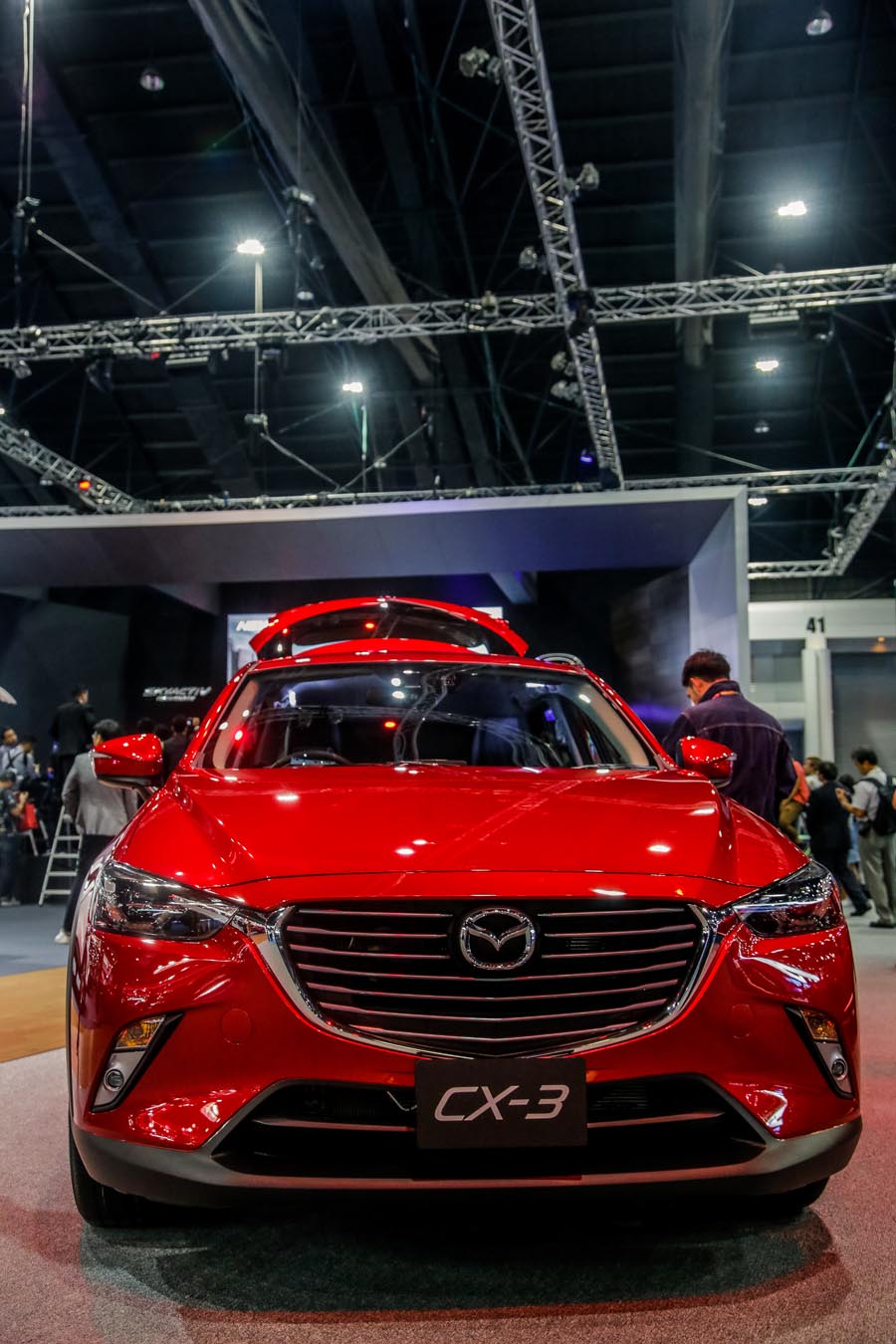 ทางด้านค่าย Mazda ก็ไม่น้อยหน้ามี New Mazda CX-5 สกายแอคทีพ และ All New Mazda CX-3 ที่เพิ่งเปิดตัวไปหมาดๆ เป็นตัวชูโรง เรียกความสนใจจากคนในงานได้เป็นอย่างดี โดยผสานการดีไซน์แบบ โคโดะ (Kodo : Soul of Motion จิตวิญญานแห่งการเคลื่อนไหว) ที่ถือเป็นเอกลักษณ์อันโดดเด่นของ Mazda ผนวกกับนวัตกรรมแบบสกายแอคทีพ ภายใต้แนวคิด “Achievment in Control ทุกความสำเร็จ…ควบคุมได้” นอกเหนือจาก New Mazda CX-5 สกายแอคทีพใหม่แล้วนั้น ภายในงานยังอวดโฉมรถสปอร์ตครอสโอเวอร์อย่าง Mazda CX-3 ใหม่ที่ตกแต่งพิเศษในสไตล์สปอร์ตเต็มขั้นครั้งแรกอีกด้วย