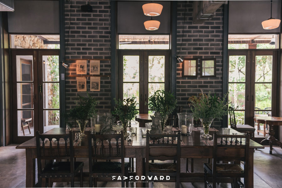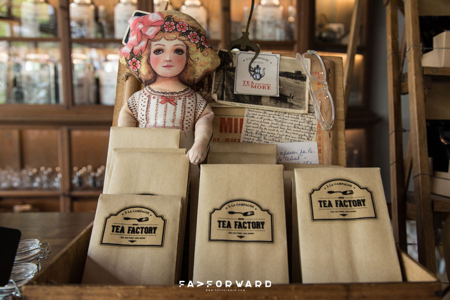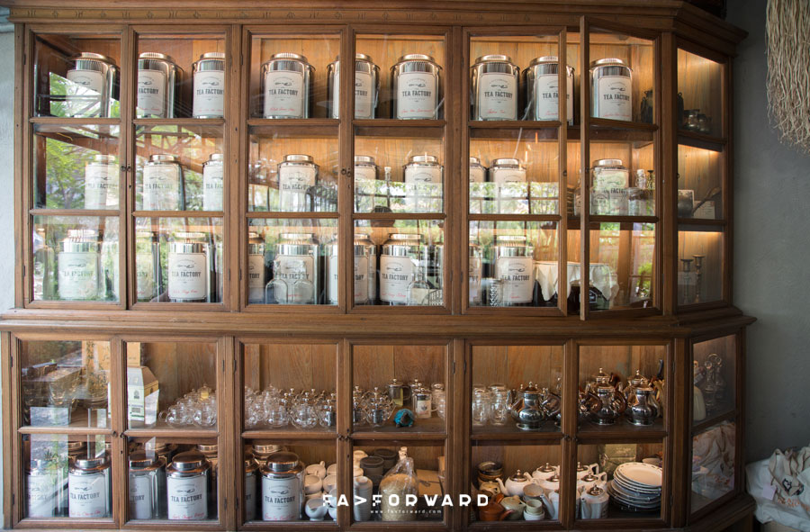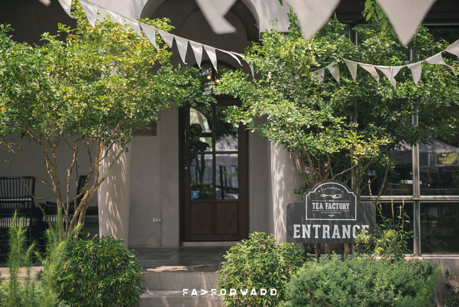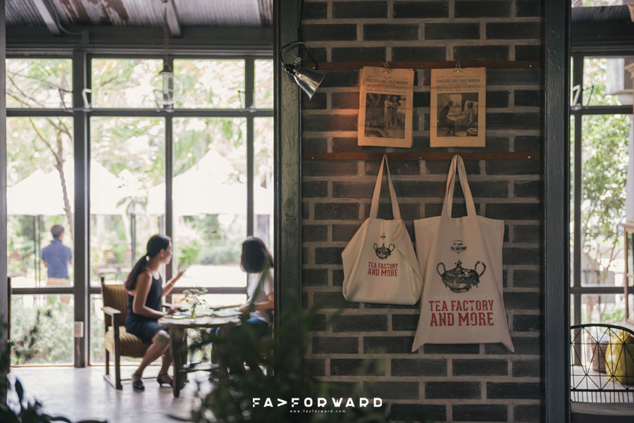 คอนเซ็ปต์ของ Tea Factory and More คือ “โรงงานชาศรีลังกา” โดยจำลองให้ร้านแห่งนี้เป็นโรงงานชาย้อนยุค เมื่อผสมผสานกับคอนเซ็ปต์ของโครงการ โรงงานชาแห่งนี้จึงมีกลิ่นอายความดิบของโรงงานผสมกับความคลาสสิกของสถาปัตยกรรมสไตล์ยุโรป เริ่มจากของตกแต่งสไตล์แอนทีคหาชมยาก ซึ่งเป็นของสะสมของเจ้าของ คุณเก๋-ชมพูนุท อิ่มอุดม และคุณก้อง-อรรณพ ชาญเชี่ยววิชัย ส่วนตัวอาคารซึ่งเป็นสถาปัตยกรรมสไตล์ชนบทยุโรป คุณเก๋ก็ได้เพิ่มความเก๋ไก๋ด้วย ‘เรือนกระจก’ ซึ่งคงคอนเซ็ปต์โรงงานชาด้วยการเลือกใช้หลังคาสังกะสีและทำร่องรอยสนิมเสมือนผ่านการใช้งานได้อย่างสมจริง ประกอบกับเฟอร์นิเจอร์มือสองส่งตรงจากยุโรป ยิ่งช่วยเสริมให้โรงงานชาแห่งนี้ เป็นโรงชาในชนบทอย่างแท้จริง