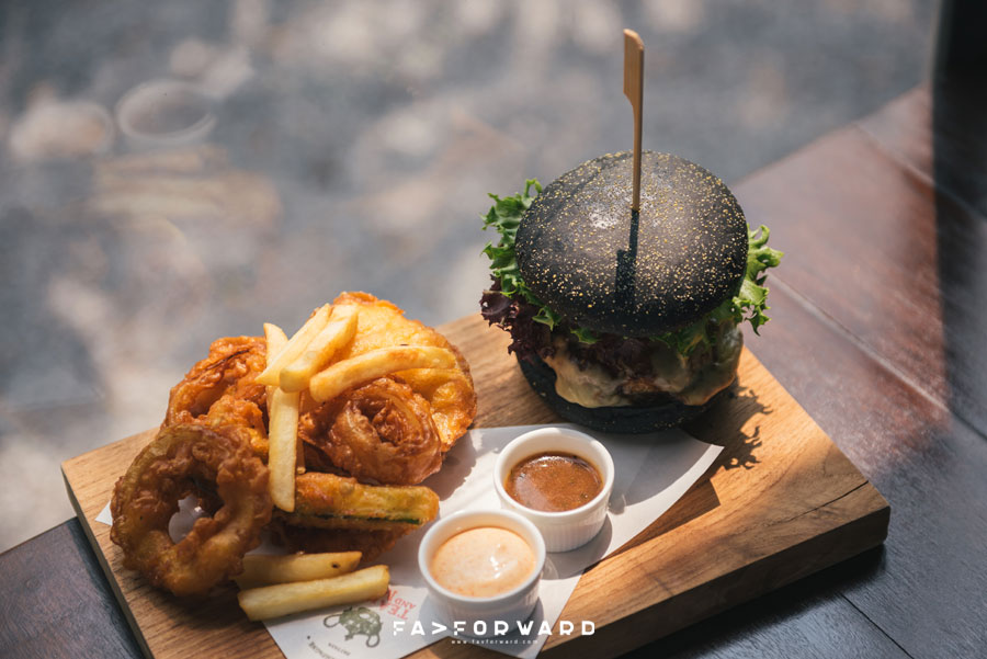 แน่นอนว่าเราไม่พลาดที่จะชิมเมนูขนมหวานซึ่งเป็นนางเอกของร้านอย่าง Sakura Moasse Cake เค้กเนื้อนุ่มละมุนลิ้น ด้านบนตกแต่งด้วยดอกซากุระ ซึ่งได้จากพิธีชงชาในงานแต่งงานของญี่ปุ่น ตัดความหวานด้วยรสเปรี้ยวจากเหล้าบ๊วยและน้ำบ๊วย นอกจากขนมหวานและเบเกอรี่ซึ่งเป็นของว่างยามบ่ายทานคู่กับชาแล้ว Tea factory and More ยังเสิร์ฟอาหารจานหลัก ซึ่งเป็นเมนูสไตล์ Western food อีกด้วย อาทิ Original Organic Pork Burger เบอร์เกอร์สไตล์ฝรั่งเศส ฯลฯ