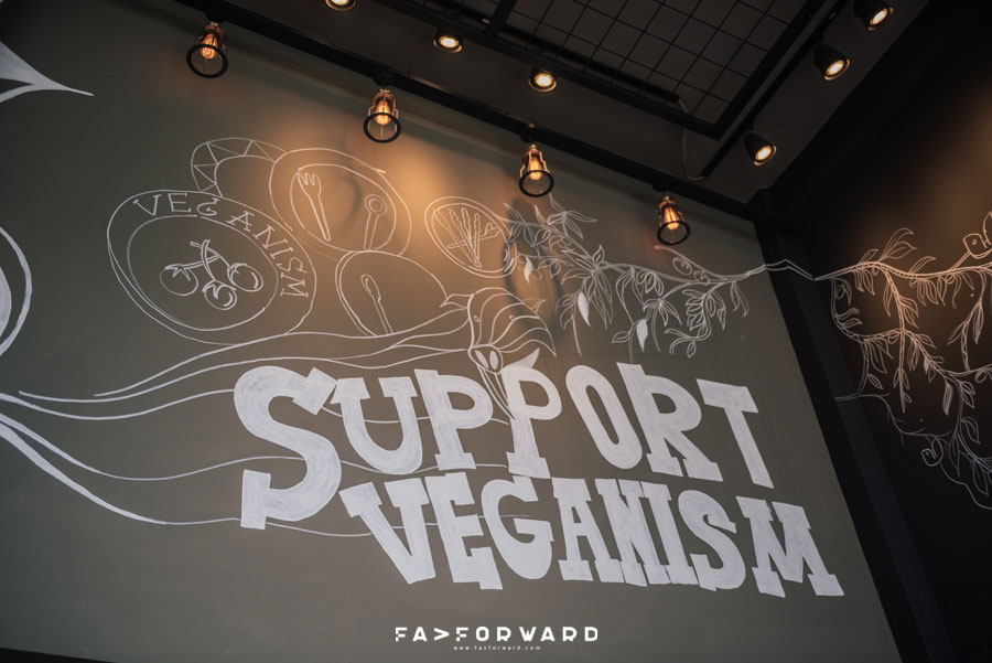 “อีกเหตุผลหนึ่งที่เปิดร้านนี้คือ มันเป็นความท้าทาย เราอยากให้คนเห็นภาพอีกด้านหนึ่งของอาหาร Vegan อยากปรับความคิดคนที่คิดว่าการไม่ทานเนื้อสัตว์เป็นเรื่องลำบากเป็นเรื่องยาก ให้เขาคิดว่าการไม่ทานเนื้อสัตว์ไม่ใช่เรื่องยาก แต่เป็นเรื่องง่ายๆ และชิวๆ เป็นไลฟ์สไตล์อีกแบบหนึ่งที่วัยรุ่นก็ทำได้ เราจึงทำคาเฟ่ที่เป็นตัวเรามากที่สุดคือ คาเฟ่ที่เสิร์ฟเมนูปกติเป็นเมนูที่ทุกคนคุ้นเคย เพียงแต่อาหารนั้นเป็นอาหาร Vegan เท่านั้นเอง”