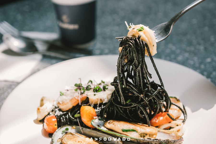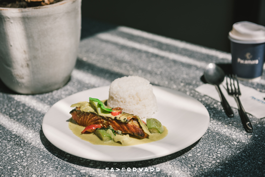 ส่วนใครชอบเมนูเส้นอย่างสปาเก็ตตี้ต้องไม่พลาดกับ Black Sea Pasta (240 บาท) สปาเก็ตตี้เส้นดำที่ให้รสชาติเผ็ดอร่อยแบบไทยไทย ด้วยการนำเส้นสปาเก็ตตี้ไปผัดกับโหระพาและอาหารทะเล ทั้งหอยแมลงภู่ตัวโต กุ้ง และปลาหมึก ต่อกันเมนูข้าวฟิวชั่นที่ชวนน้ำลายไหลอย่าง Salmon Curry with Rice (265 บาท) แซลมอนชิ้นโตที่รวดด้วยแกงเขียวหวานรสไทยๆ ทานคู่กับข้าวสวยร้อนๆ รับรองว่าฟินจนอยากขอเพิ่มอีกจาน