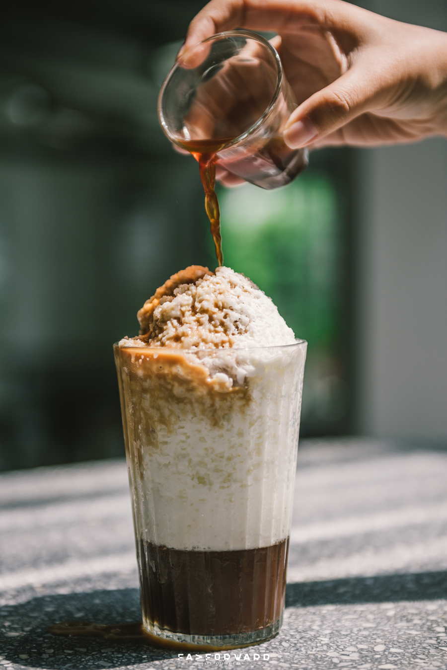 ต่อกันด้วยอีกหนึ่งเมนูซิกเนเจอร์ที่ภูมิใจนำเสนอกับ Snow Cold Brew (130 บาท) เมนูเครื่องดื่มที่ให้ความรู้สึกเสมือนทานบิงชู นั่นเพราะ Snow Cold Brew หนึ่งแก้วจะประกอบด้วยช็อตเอสเพรสโซ่ที่ผสมเจลาติน ใส่น้ำแข็งใสละเอียดที่ได้จากเครื่องทำบิงซู ราดความอร่อยแบบเข้มข้นถึงรสกาแฟด้วยช็อต cold brew แต่หากใครชื่นชอบ Art Latte ที่นี่ก็มีเสิร์ฟให้เราได้ลิ้มลองเช่นกัน