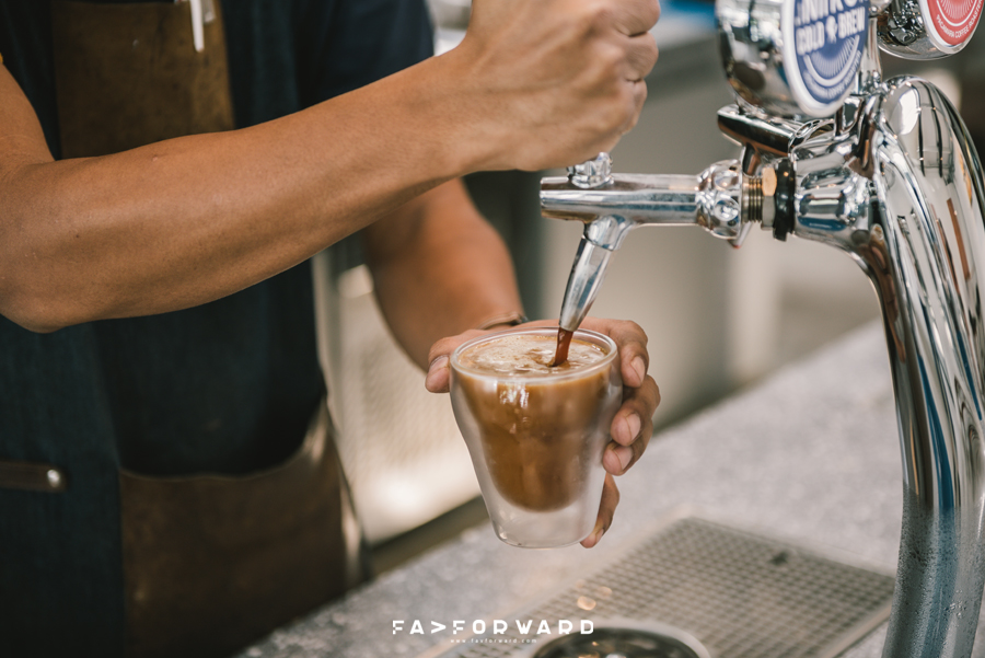 แน่นอนว่าเมื่อมาร้านกาแฟทั้งทีก็ต้องไม่พลาดกับเครื่องดื่มเมนูซิกเนเจอร์อย่าง Nitro Cold Brew (120 บาท) กาแฟดำที่สกัดด้วยน้ำเย็นแล้วนำไปอัดด้วยแก๊สไนโตรเจนผ่านหัวฉีดที่คล้ายกับหัวฉีดเบียร์ ซึ่งความพิเศษของ Nitro Cold Brew อยู่ที่รสสัมผัสที่ได้ซึ่งจะแตกต่างจากกาแฟดำที่ชงแบบธรรมดาทั่วไปๆ เสมือนกาแฟดำรสเข้มข้นที่ให้รสสัมผัสของเบียร์ เป็นเครื่องดื่มที่อยากให้คนรักกาแฟได้ลิ้มลอง นอกจากกาแฟไนโตรแล้วที่นี่ยังมีชาไนโตรอย่าง Nitro Tea Infusion ให้เราได้เลือกลิ้มลองอีกด้วย