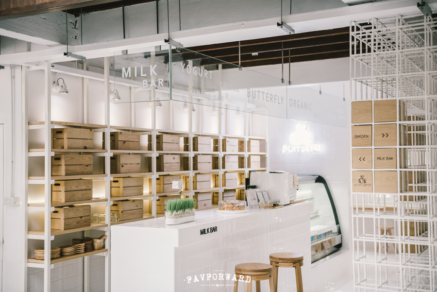 ช่วงระยะกว่า 7 ปีที่แบรนด์ Butterfly Organic Milk ก่อร่างสร้างตัวจากขนมคัสตาร์ดสู่นมออแกนิกที่วางจำหน่ายตามห้างสรรพสินค้า มาวันนี้ Butterfly Organic Milk ก็ได้ขยับขยายตัวด้วยการมีคาเฟ่นมเป็นของตัวเอง จึงไม่แปลกหากจะกล่าวว่าคาเฟ่แห่งนี้เปรียบเสมือนหน้าร้านของแบรนด์ แต่ก่อนที่เราจะพาคุณผู้อ่านไปสำรวจคาเฟ่สีขาวแห่งนี้ เราขอพาคุณนั่งไทม์แม็ชชีนย้อนกลับไปดูแรงบันดาลใจและจุดเริ่มต้นของคาเฟ่แห่งนี้กันก่อน