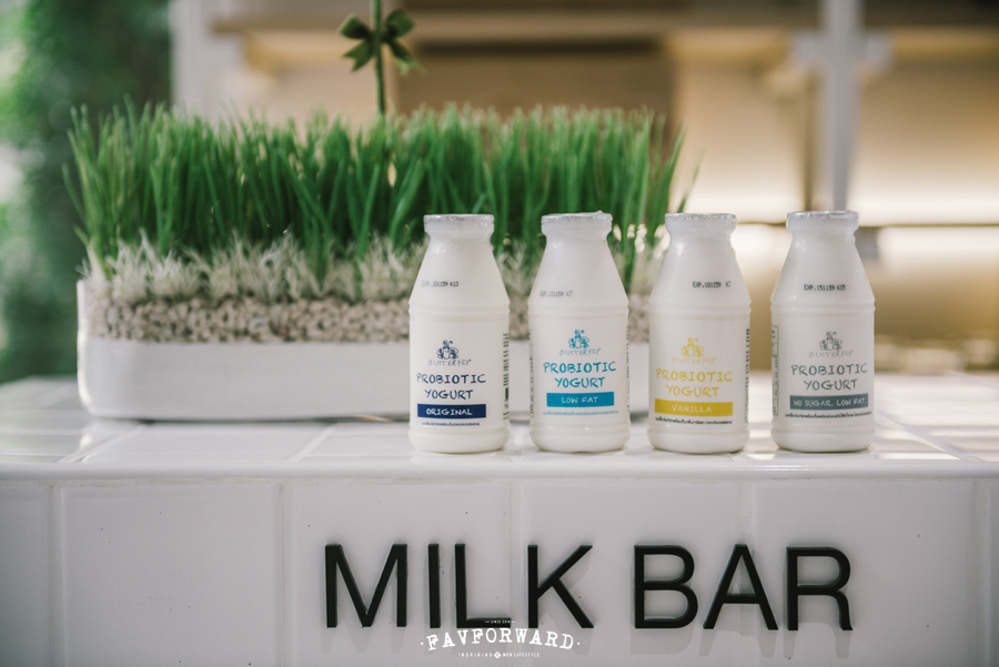และเมื่อคาเฟ่แห่งนี้เป็นคาเฟ่นม ที่นี่จึงเสิร์ฟนมและโยเกิร์ตซึ่งเป็นผลิตภัณฑ์ของแบรนด์เป็นหลัก อย่างนมออแกนิกที่มีให้ชิมถึง 4 รสด้วยกัน ทั้ง Organic Whole Milk นมวัวออแกนิกแท้ๆ 100% ที่ไม่เจืออะไรเลยแม้กระทั้งน้ำตาล Organic Low Fat Milk นมรสนี้จะคล้ายกับ Organic Whole Milk เพียงแต่เป็นนมที่ดึงไขมันออกมาแล้ว Organic Vanilla Milk นมที่แต่งกลิ่นวนิลาธรรมชาติ เพิ่มความอร่อยด้วยน้ำตาลเพียง 3% จึงไม่หวานมาก และ Organic Chocolate Mile นมรสช็อกโกแลตที่มีความพิเศษอยู่ที่การเลือกใช้ช็อกโกแลตธรรมชาติซึ่งนำเข้าจากอิตาลี ทำให้นมช็อกโกแลตนี้มีความเข้มข้นมากและเราสามารถกำหนดความเข้มข้นของช็อกโกแลตได้ด้วยการเขย่า เพราะ Butterfly Organic Milk เป็นนมออแกนิกที่ไม่เจือสารใดๆ นมรสช็อกโกแลตจึงไม่เจือสารแขวนลอย ทำให้ช็อกโกแลตในนมเกิดการนองก้นขวด ดังนั้นหากอยากดื่มนมช็อกโกแลตแบบเข้มข้นหรือเจือจางจึงขึ้นอยู่กับการเขย่าขวดนั่นเอง