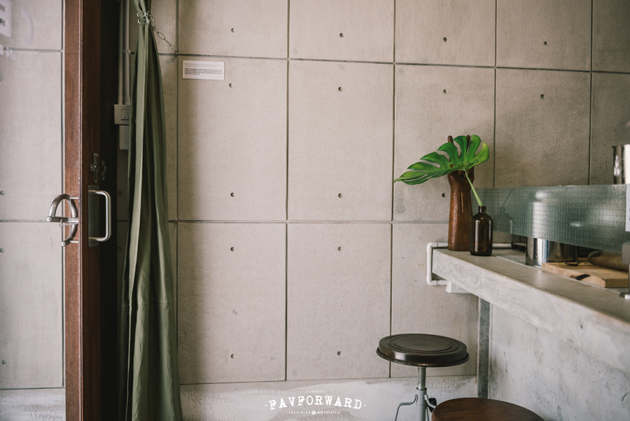 ส่วนการตกแต่งภายใน คุณเหมียวบอกกับเราว่าเป็นพื้นที่ที่รีโนเวทมากที่สุด โดยเฉพาะชั้นล่างซึ่งเป็นพื้นที่ของคาเฟ่ ตั้งแต่เคาน์เตอร์ที่ประกอบขึ้นจากเสาเข็มและปูนเปลือย พร้อมตกแต่งผนังร้านอย่างสร้างสรรค์ด้วยการใช้วีว่าบอร์ด (Viva Board) ที่นำมาเปลี่ยนหน้าตาให้คล้ายคลึงกับแผ่นคอนกรีตสำเร็จรูป เพิ่มกลิ่นอายวินเทจให้ร้านสมกับที่ตั้งอยู่ในย่านชุมชนเก่าด้วยเฟอร์นิเจอร์เก่าและของสะสมเก่าเก็บของคุณพ่อ