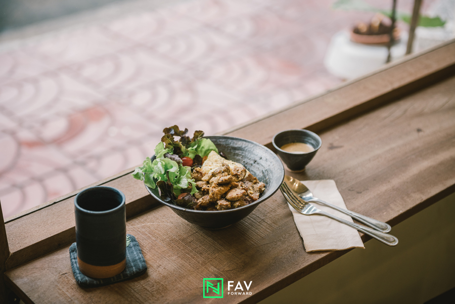 “วัตถุดิบเราจะใช้ของดีๆ ที่เรากินเอง เพราะส่วนใหญ่ร้านอาหารจะถูกจำกัดด้วยต้นทุน ซึ่งเราก็คิดว่า เหมือนตอนแรกเราทำกินเอง ใส่เต็มที่เลย แต่พอทำร้าน มันก็จะมีข้อจำกัดเรื่องต้นทุน แต่เราก็รู้สึกว่า จริงๆ แล้วเราไม่ควรจะไปเปรียบอะไรแบบนั้น ก็เลยใช้ของดีๆ อย่างผักกับข้าวออแกนิก เพราะเราก็ซีเรียสเรื่องสุขภาพด้วย”