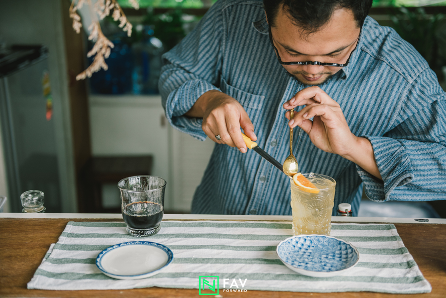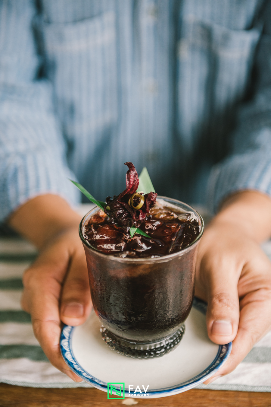 “มีคนถามมาเยอะว่าทำไมเอาพวกขิง กระเจี๊ยบ ใบเตยมาอยู่ในเครื่องดื่ม คือด้วยความที่เราทำงานเป็นบาริสต้ามาแปดปี เรามีการผสมเครื่องดื่มนู้นนี่นั่นเยอะ ผมรู้สึกว่าส่วนผสมที่หาได้ง่ายๆ ในไทย มันก็มีคาแร็กเตอร์หรือเอกลักษณ์ในตัวมันเอง ถ้าเราจับมาแต่ง มันก็จะมีความโดดเด่นในตัวของมัน แต่ละเมนูมันก็เหมือนคนๆ หนึ่ง มีบุคลิกที่แตกต่างกันไป มีทั้งอาหารตา อาหารจมูก และอาหารปาก”