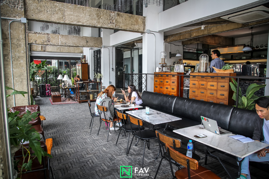 “มีความดิบ เน้นความดิบ แต่ไม่อยากตีโจทย์ให้เป็นลอฟท์ เพราะตอนนี้ถ้าเป็นลอฟท์คนก็จะมองว่าเป็นเหล็กๆ ไม้ๆ แต่ว่าลอฟท์สมัยก่อนจะเป็นห้องใต้ดาดฟ้าที่ไม่ได้มีการตกแต่งอะไร มีความจริงใจของวัสดุ เราตีความอย่างนั้นมากกว่า อิฐก็คืออิฐ ไม่เท่ากันบ้าง เหล็กคือเหล็ก คานคือคาน ไม่ได้ปกปิดอะไร แต่ก็ไม่ได้แย่ขนาดที่ทำให้คนรู้สึกว่ายังไม่เสร็จ”