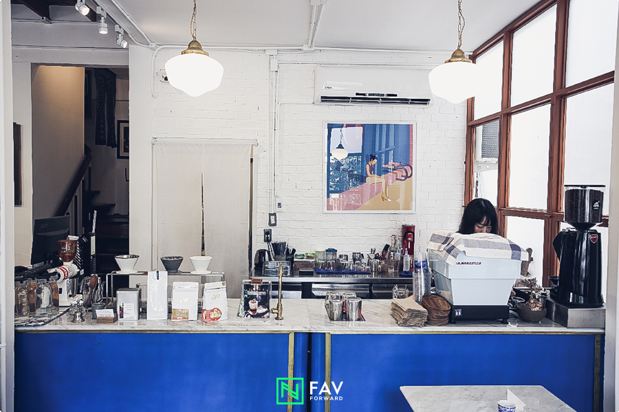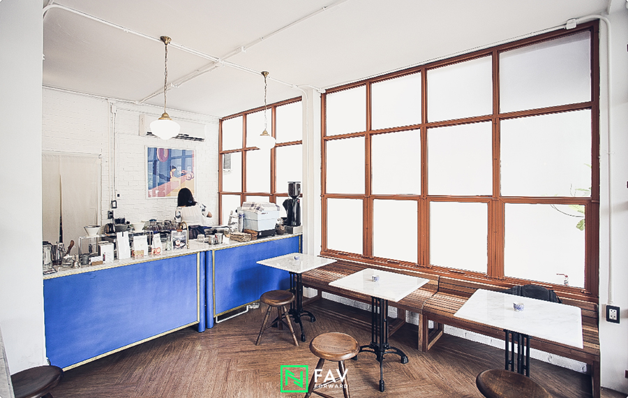 จากคาเฟ่ดิบสไตล์ลอฟท์ถูกปรับเปลี่ยนให้โมเดิร์นและเก๋กว่าเคยภายในบ้านไม้สองชั้นหลังเดิม โดยคุณตั้ม – กิตติพงษ์ ไพบูลย์สมบัติ ได้เปลี่ยน Blue Dye Café จากชายหนุ่มมาดเซอร์สู่สุภาพบุรุษมาดเนี้ยบ เริ่มจากการปรับคาแรคเตอร์ให้สดใสในโทนสีน้ำเงินสว่างตัดกับสีทองและสีขาวอย่างลงตัว เสริมบรรยากาศอบอุ่นด้วยเฟอร์นิเจอร์ไม้ พร้อมกับเปิดพื้นที่ให้โล่งโปร่งด้วยผนังกระจกแทนที่ด้วยผนังอิฐโชว์แนว พร้อมขยับขยายสเปซด้วยการต่อเติมห้องกระจก ซึ่งสเปซส่วนนี้ คุณตั้มออกแบบให้เป็น Coffee Bar ที่มีทั้ง Espresso bar และ Filter bar