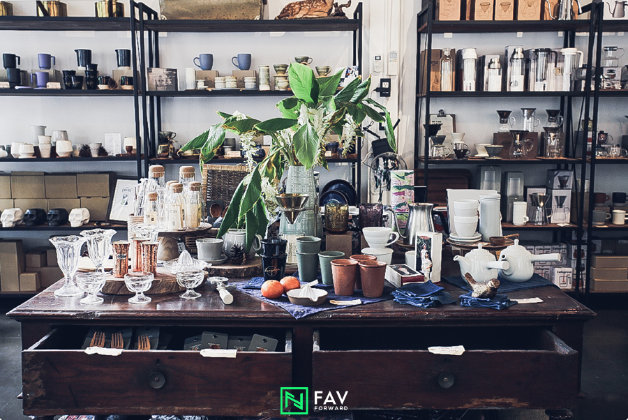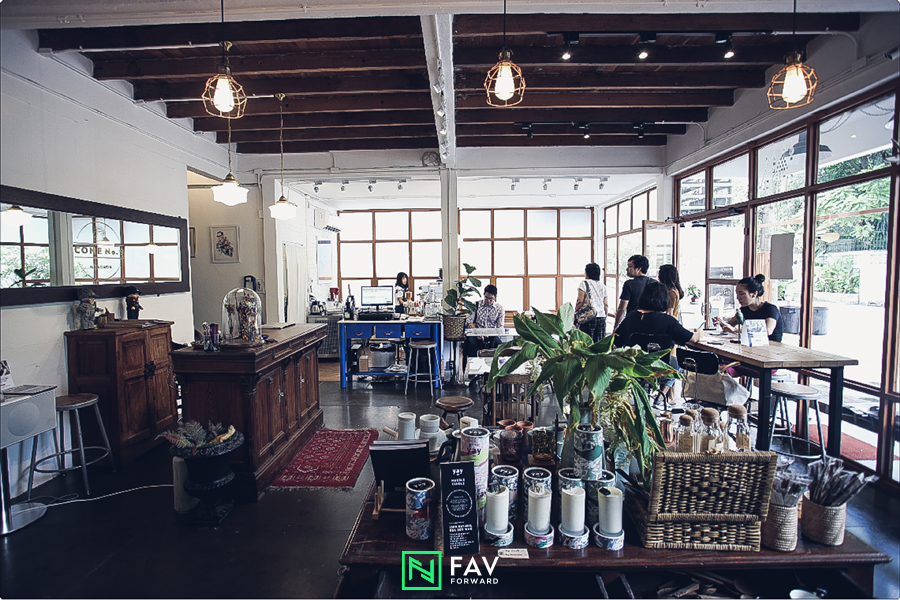 ไม่เพียงแต่การรีโนเวทเปลี่ยนภาพลักษณ์เท่านั้น แต่คุณตั้มยังเปลี่ยนคาเฟ่ธรรมดาให้กลายเป็น Lifestyle Café ที่ไม่การมานั่งจิบกาแฟกินขนมเพียงอย่างเดียว แต่ยังให้เราได้ชมและช้อปงานเซรามิกจากแบรนด์ Cone No.9 ซึ่งคุณมิ้น – วรามล ชุนชาติประเสริฐ เป็นผู้ดูแลและเจ้าของแบรนด์ และบนชั้นสองของบ้านยังเปิดสเปซเป็นช็อปเสื้อผ้าสไตล์วินเทจของคุณตั้มเองอีกด้วย