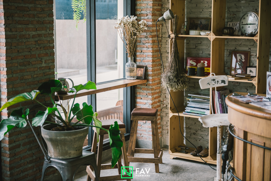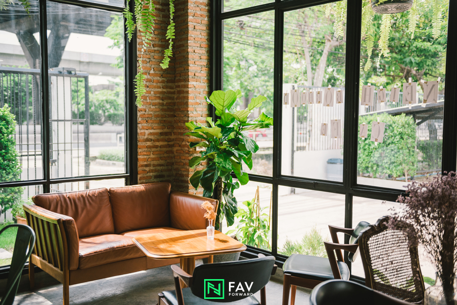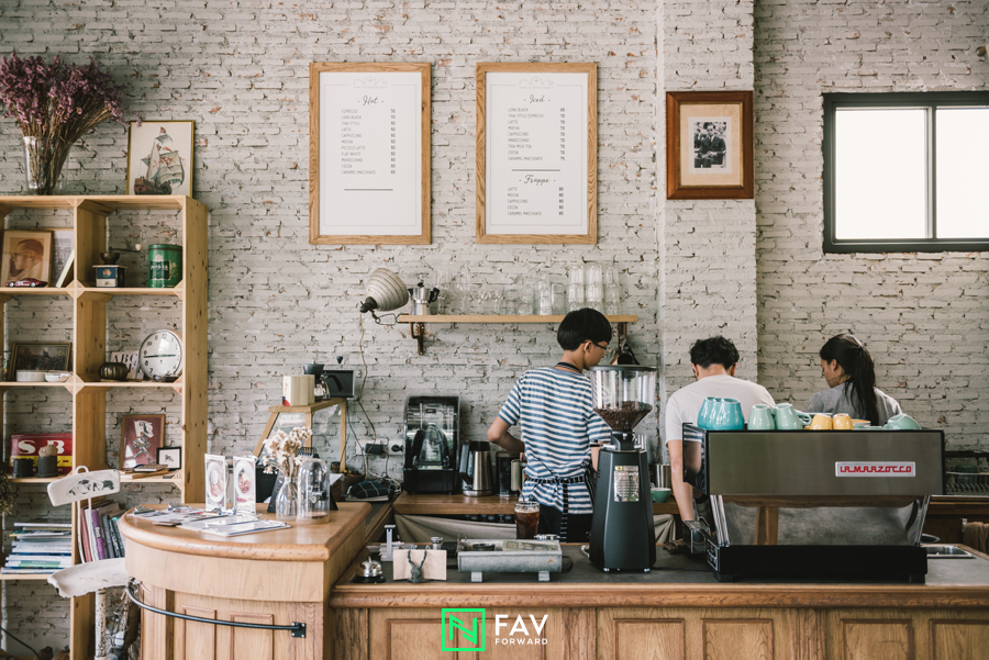 “ผมอยากให้ลูกค้าได้มาซึมซับบรรยากาศ เลยอยากได้สเกลคล้ายๆ เป็นบ้าน มีเฟอร์นิเจอร์คละแบบ มีโซฟา มีเก้าอี้ที่เราเก็บสะสมไว้ ของวินเทจเราก็เอามาใส่ที่ร้าน เราไม่ได้อยากได้ร้านคูลๆ แต่อยากได้ร้านที่มีบรรยากาศเป็นกันเอง”