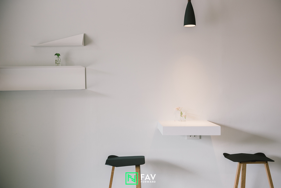 ความไม่ธรรมดาที่สร้างความประทับแรกของ Invisible Room Coffee จนกลายเป็นแรงผลักดันให้เราเดินทางไปเยือนคาเฟ่แห่งนี้คงเป็นอินทีเรียที่เปลี่ยนห้องสี่เหลี่ยมขนาดหนึ่งคูหาแห่งนี้ให้มีเสน่ห์ ด้วยการนำเสนอความเรียบง่ายตามแบบฉบับมินิมัลในโทนสีขาวเป็นหลัก ไม่ลืมเติมบรรยากาศอบอุ่นและเป็นกันเองผ่านกรอบไม้ที่ออกแบบเป็นหน้าต่างและกรอบประตูหน้าร้าน