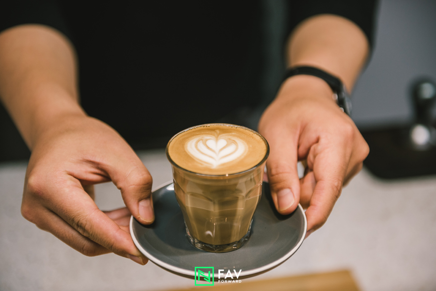 โดยเมนูที่คุณหนุนแนะนำให้เราลิ้มลองในวันนี้คือ Piccolo (65 บาท) เครื่องดื่มที่มีกาแฟกับนมในปริมาณเท่ากัน เป็นเมนูที่เสิร์ฟให้ลูกค้าที่อยากดื่มกาแฟที่ใส่นม แต่อยากดื่มเข้มๆ ใส่นมน้อยๆ กาแฟนี้จึงให้รสเข้ม ขณะเดียวกันก็กลมกล่อมด้วย หรือจะลิ้มลองเมนูพิเศษอีกหนึ่งเมนู Flat White (75 บาท) กาแฟแก้วนี้จะมีความคล้ายลาเต้ แต่จะพิเศษตรงที่มีปริมาณนมน้อยกว่า ขณะเดียวกันก็ให้รสเข้มข้นกว่า Piccolo ซึ่งคุณหนุนแนะนำสำหรับคนอยากดื่มกาแฟใส่นมเข้มๆ ซึ่งเมนูนี้มีแบบเย็นให้เราเลือกดื่มอีกด้วย
