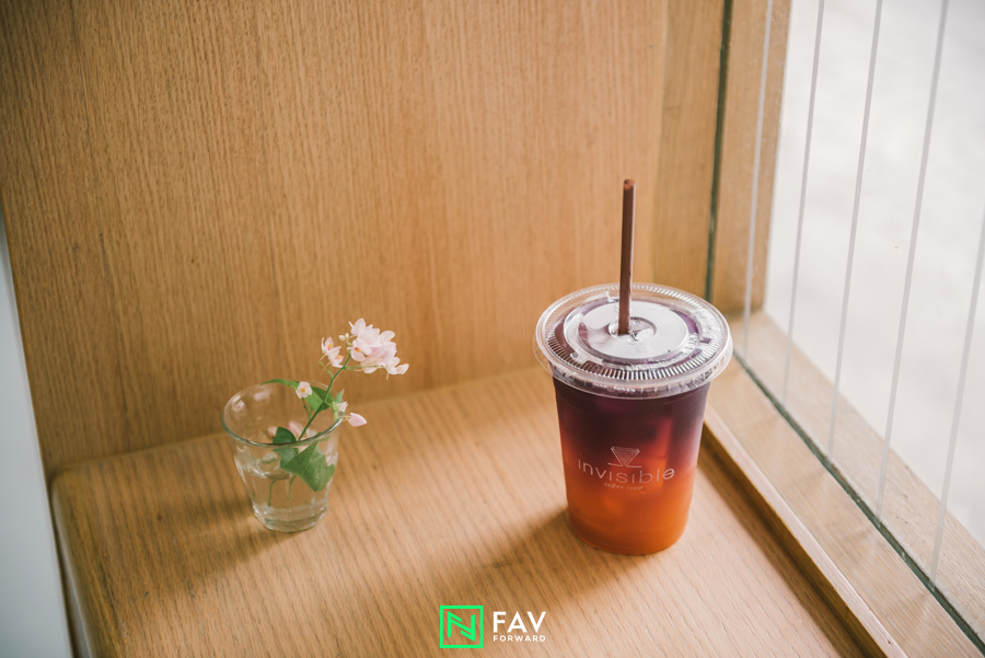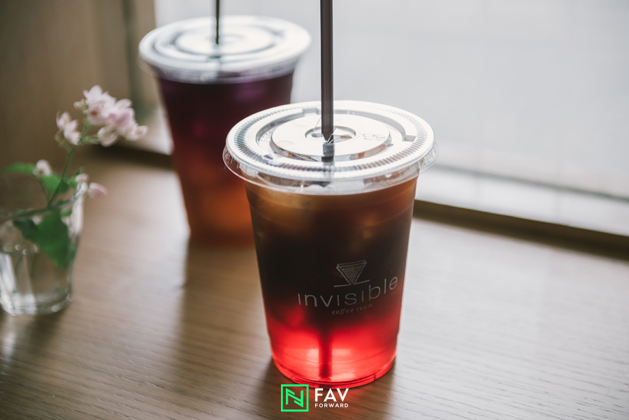 “หลักๆ เราเป็นร้านกาแฟ แต่เราก็เข้าใจว่าคนไทยบริโภคกาแฟยังน้อยอยู่ เราก็เลยมีเมนูอื่นที่เป็นเมนูเสิร์ฟคนไม่ดื่ทกาแฟ แล้วก็เมนูสำหรับคนที่ไม่ดื่มนมด้วย” ดังนั้นนอกจากกาแฟแล้ว Invisible Room Coffee ยังมีเมนูครีเอทอื่นๆ มาให้ลิ้มลองอย่าง T&B Tea (80 บาท) หรือชามะขามอัญชัน กับการนำชามะขามจากโคราชมาผสมผสานกับความสวยงามของอัญชัน จนได้เครื่องดื่มรสเปรี้ยวอมหวานให้ความสดชื่น โดยเฉพาะรสเข้มข้นของมะขาม