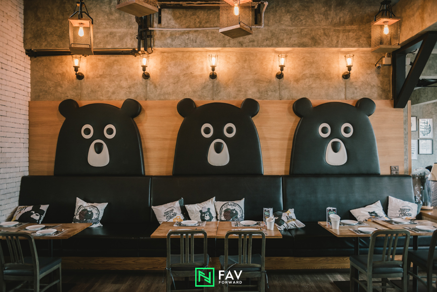 Villa De Bear มาพร้อมกับคอนเซ็ปต์ “โรงงานผลิตตุ๊กตาหมี” โดยมีหมีดำอ้วนกลม Villy เป็นเจ้าของโรงงาน พร้อมด้วยแก๊งเพื่อนอีก 4 ตัวมาทำหน้าที่สร้างความสนุกและความสุขให้ลูกค้าที่แวะไปเยี่ยมเยือน Villa De Bear จึงไม่ใช่แค่ Food Village ที่ให้เราแวะไปฝากท้องเท่านั้น แต่ที่นี่ยังเป็นอีกหนึ่งสถานที่สร้างความสุขระหว่างเรากับผองเพื่อนและครอบครัว