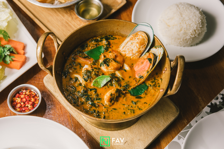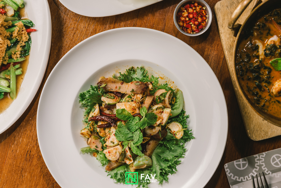 โดยเมนูอาหารไทยโมเดิร์นที่ร้านแนะนำในวันนี้มี แกงคั่ววิลลี่ทะเลรวม ( 250 บาท ) ที่ใช้ผักโขมแทนใบขี้เหล็ก แต่ยังคงรสดั้งเดิมของแกงคั่ว ทั้งรสเข้มข้นของเครื่องแกงและความหวานมันของกะทิ เป็นการผสมผสานระหว่างตะวันตกและตะวันออกอย่างลงตัว ต่อกันด้วยเมนูคุ้นเคย คะน้าปลาเค็มฟู (220 บาท) ที่เสิร์ฟความไม่ธรรมดาด้วยปลาเค็มทอดฟูกรอบ แทนที่ด้วยปลาเค็มชิ้น ผนวกกับความกรอบและสดของคะน้า ทำให้เมนูกลายเป็นเมนูโปรดของเราได้ไม่ยาก