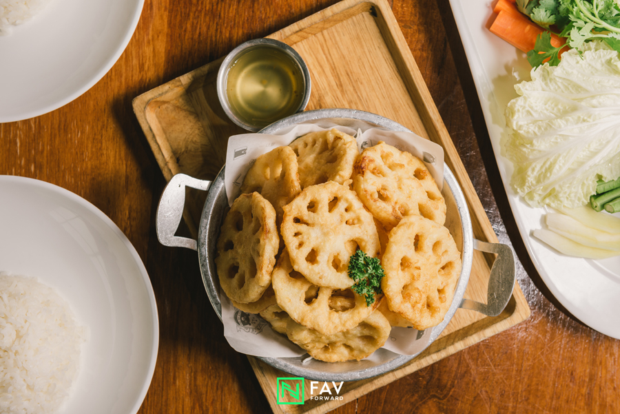 ส่วนใครที่ชอบทานหลนต้องไม่พลาดกับ หลนเนื้อปู (380 บาท ) หลนที่อัดแน่นด้วยเนื้อปูสดๆ เสิร์ฟพร้อมกับผักสดสีสวยหลากชนิด ตามมาด้วย ยำหมูย่างมะเขือเปราะ (180บาท) ยำรสแซ่บแบบไทยๆ ที่หอมสมุนไพรหลายชนิด เข้ากันได้ดีกับหมูย่างนุ่มลิ้น ปิดท้ายกัน รากบัวทอด (140 บาท ) เมนูที่ได้ไอเดียมาจากของกินเล่นสุดฮิตอย่างเฟรนฟราย โดยนำรากบัวไปชุบแป้งทอดจนเหลืองกรอบ จะทานเป็นกับข้าวหรือสั่งมาทานเล่นก็อร่อยลงตัว