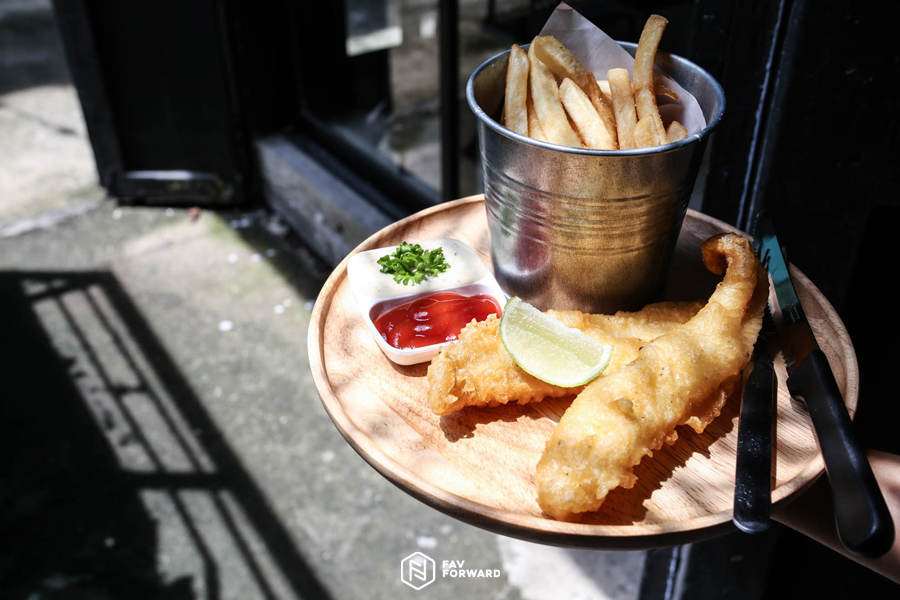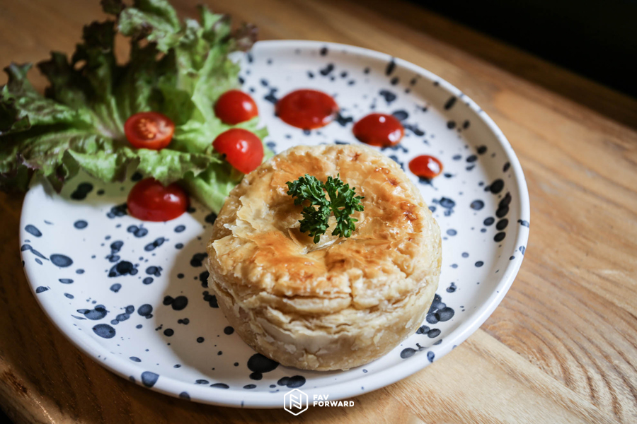 เริ่มจากเมนู “Fish & Chips” (140 บาท) กับความอร่อยที่ความสดของปลาดอลลี่นำไปทอดจนเหลืองกรอบน่าทาน เสิร์ฟคู่กับเฟรนช์ฟรายทอดที่ให้ความกรอบนอกนุ่มในและไม่อมน้ำมัน เสริมความอร่อยด้วยทาร์ทาร์ซอสและซอยมะเขือเทศ กลายเป็นเมนูเบาๆ ให้ทานเพลินๆ ต่อกันด้วย “Savory Pie” (70 – 85 บาท) พายโฮมเมดที่สอดไส้ความอร่อยหลากหลายให้เลือกชิม ทั้งพายสตูเนื้อวัว, พายไก่กับลีค, พายผักโขมกับเห็ดแชมปิญอง, พายพะแนงหมู, พายเบคอนและไข่ เป็นต้น