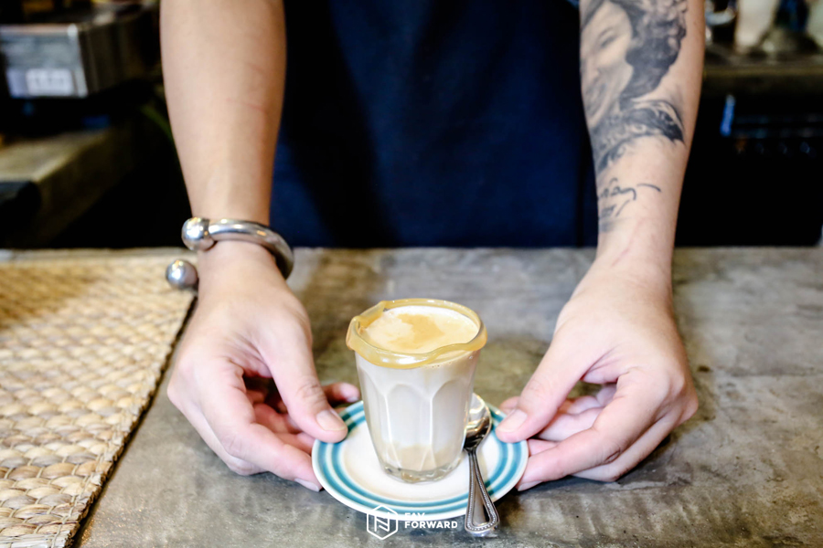 ส่วนเมนูอาหารและเครื่องดื่มเน้นอาหารว่างทานง่ายๆ แต่เน้นคุณภาพและความอร่อยเป็นหลัก “เน้นอาหารเบาๆ ทานเล่น เพราะว่าเราไม่มีทีมและผมอยากทำร้านเองด้วยครับ อย่างวันธรรมดาก็จะเห็นผมอยู่คนเดียว วันเสาร์อาทิตย์ก็จะมีแฟนมาช่วย ก็เลยไม่อยากมีเมนูหลักเยอะ ไม่งั้นจะไม่ไหว”