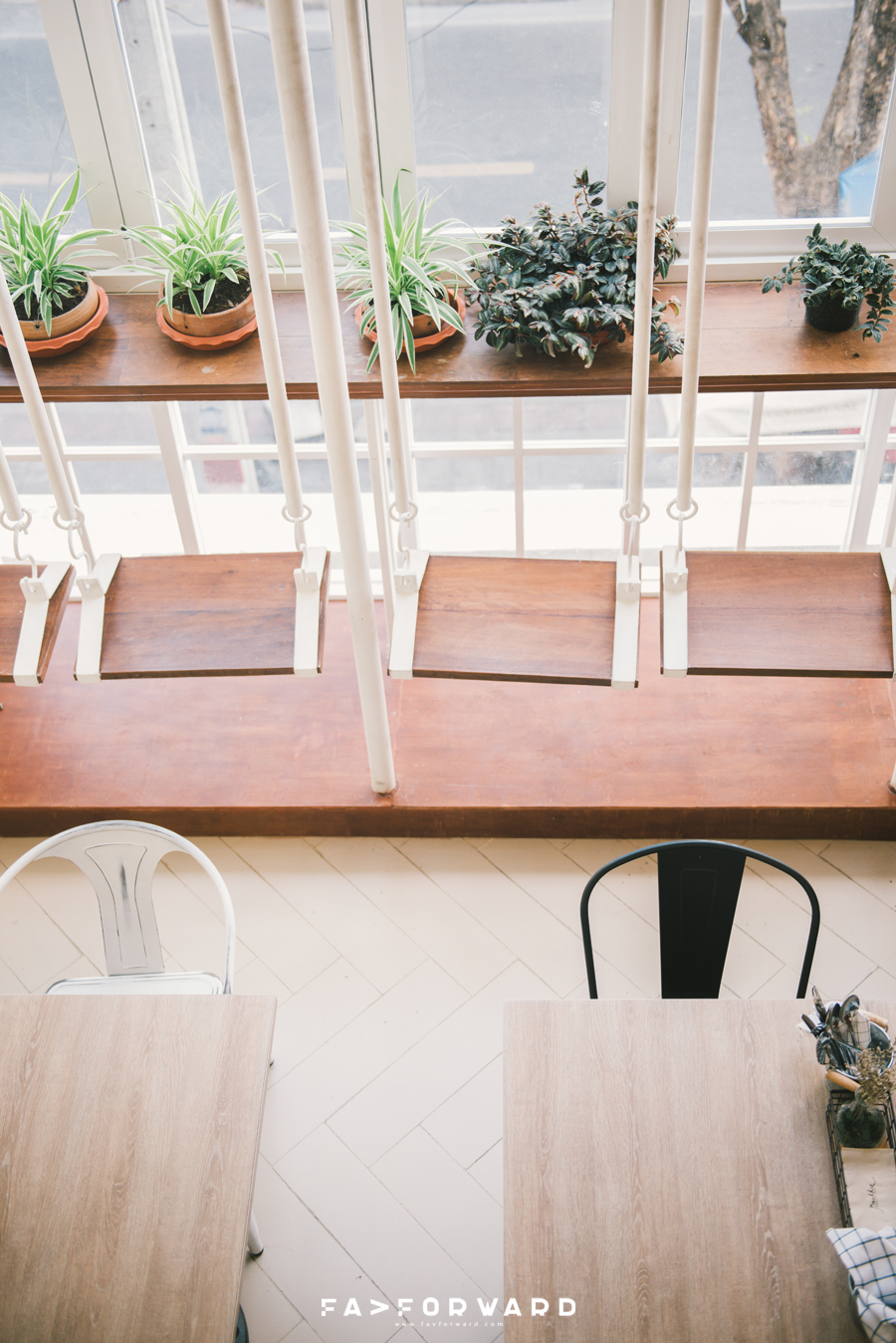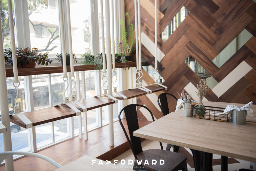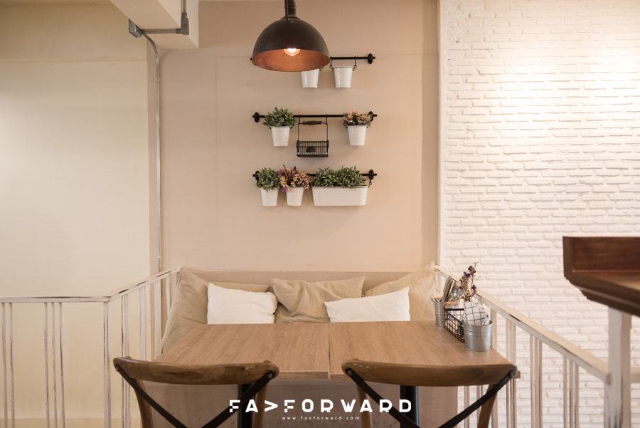“เบสมีคอนเซ็ปต์ตั้งแต่แรกว่าอยากทำร้านอาหารที่ดีต่อสุขภาพที่ไม่ใช่แค่ healthy อย่างเดียว แต่อยากให้เวลาลูกค้ามากิน เขารู้สึกว่าอาหารของเราเป็นธรรมชาตินะ เบสจึงอยากให้ร้านมีบรรยากาศแบบโฮมเมด เขาเข้ามากินที่ร้านก็เหมือนมากินที่บ้าน” คุณเบส – ณิชชารีย์ กิจวิริยะธนโชติ เจ้าของร้านบอกเล่าถึงไอเดียการตกแต่งของร้าน