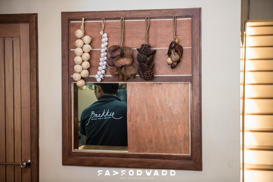 Brekkie คาเฟ่ชื่อน่ารักในบรรยากาศสบายๆ ด้านหน้าต้อนรับเราด้วยเคาน์เตอร์ตลาดผลไม้สดที่จำลองเสมือน farmer market ซึ่งเป็นวัตถุดิบของร้าน ส่วนชั้นสองและชั้นสามเป็นพื้นที่นั่งทานอาหาร โดยตกแต่งเรียบง่ายแต่อบอุ่นเสมือนอยู่บ้าน