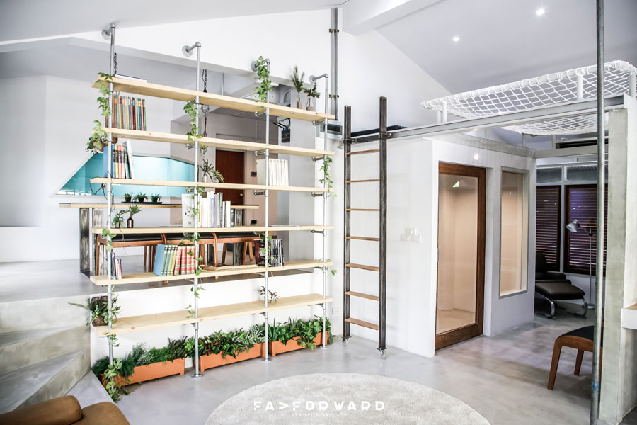 ส่วนการตกแต่ง ผมก็อยากได้พื้นที่ที่มันดิบๆ หน่อย เป็นการออกแบบกึ่งเสร็จกึ่งไม่เสร็จ เพราะผมคิดว่าการทำงานมันไม่มีวันจบ เราสามารถทำให้มันดีขึ้นได้เรื่อยๆ ผมก็เลยมองว่าที่ตรงนี้จะกลายเป็นตัวกระตุ้นได้ดี แบบว่ามองแล้วก็คิดว่ามันทำอะไรได้อีกนะ มันจึงเป็นอะไรที่สนุก”