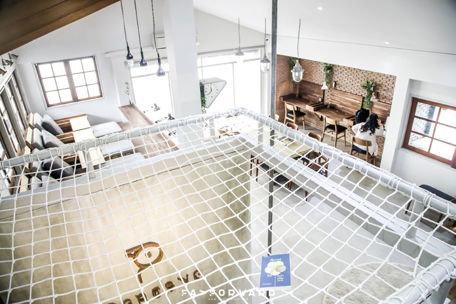 Pencave ไม่เพียงแต่เป็นพื้นที่ทำงานที่รายล้อมด้วยธรรมชาติใจกลางกรุงเท่านั้น แต่ co-working แห่งนี้ยังออกแบบมาเพื่อตอบรับการทำงานของเหล่า ‘ดีไซเนอร์’ โดยเฉพาะ ไม่ว่าจะเป็นบรรยากาศหรือการตกแต่ง โดยคุณเก้ทำหน้าที่อินทีเรียดีไซน์ด้วยตนเอง และแน่นอนว่าแรงบันดาลใจในการออกแบบย่อมมาจากไลฟ์สไตล์การทำงานด้านกราฟฟิกดีไซเนอร์ของคุณเก้เอง ไม่ว่าจะเป็นบรรยากาศดิบๆ สไตล์ลอฟต์ แต่ให้ความรู้สึกละมุนและเป็นกันเองจากแสงธรรมชาติ ผนวกกับการเพิ่มความสนุกให้การทำงานด้วยพื้นที่หลากหลาย ทั้งเปลเชือกถักที่ให้เราขึ้นไปนอนเล่น หรือเก้าอี้นอนที่ได้แรงบันดาลใจจากเก้าอี้ชายหาดที่พร้อมให้คุณนอนพักผ่อน ขณะเดียวกันก็สามารถลุกขึ้นมาทำงานได้ทันทีที่ปิ้งไอเดีย เป็นต้น