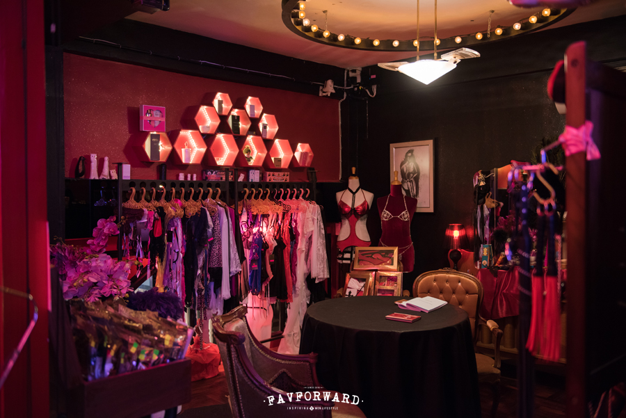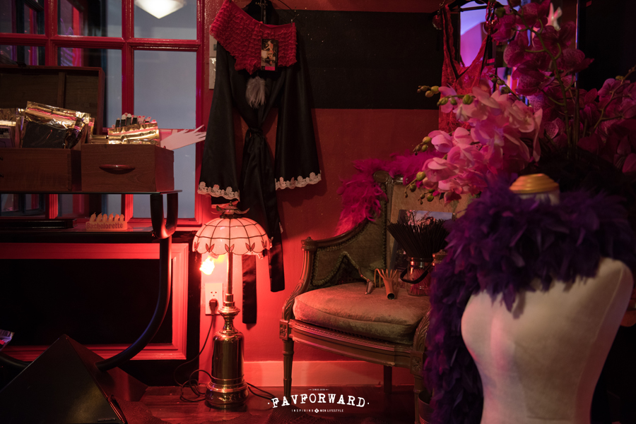 ไม่เพียงแต่คาแร็กเตอร์ที่ได้แรงบันดาลใจจากภาพยนตร์ ฉ 20+ เท่านั้น แม้กระทั่งการแต่งร้าน คุณออยยังได้ไอเดียมาจากฉากในภาพยนตร์ เริ่มจากโทนและบรรยากาศร้านที่คุณออยเลือกใช้สีดำ-แดงที่ดูร้อนแรง เพื่อสร้างบรรยากาศสลัวน่าค้นหา ขณะเดียวกันไฟสีแดงยังช่วยสร้างบรรยากาศยั่วยวน ชวนให้คิดถึงห้องลับสีแดงของมิสเตอร์เกรย์ในภาพยนตร์อีกด้วย โดยคุณออยตั้งใจตกแต่งให้มีลักษณ์เหมือนห้องนอนของหญิงสาวที่ซุกซ่อนความลับเอาไว้ ดังนั้นการจัดวางของในร้านจึงไม่โจ่งแจ้งแต่ก็ไม่ปิดบัง เพื่อให้ลูกค้าตื่นเต้นและเกิดอาการอยากค้นหานั่นเอง
