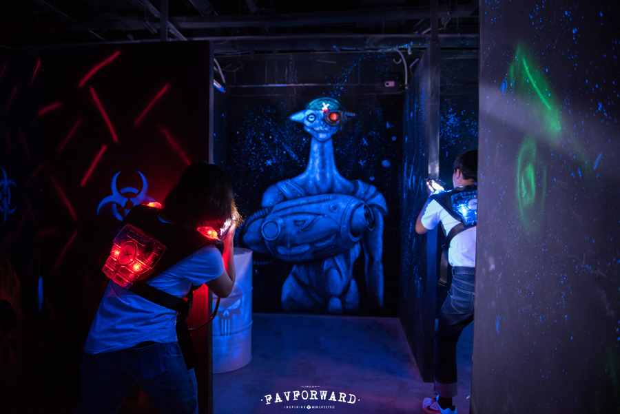 ทันทีที่เราก้าวเข้าสู่ Arena จะพบกับสนามรบที่ถูกออกแบบให้สลับซับซ้อน ตั้งแต่การคิดและวางกำแพงที่ทำให้ผู้เล่นต้องวิ่งตลอดเวลา การลดจุดบอดของพื้นที่สูงซึ่งเป็นทำเลทองในการซุ่มยิง เพิ่มความสนุกให้ผู้เล่นด้วยการป้องกันฐานของตัวเองและโจมตีฐานของฝ่ายตรงข้ามด้วยการแบ่งพื้นที่ Arena ออกเป็น 4 ฐาน รวมทั้งใส่ใจรายละเอียดเล็กๆ น้อยๆ อย่างการเพ้นท์ลวดลายบนกำแพงด้วยมือที่ทำให้สนามรบแห่งนี้มีมิติ เพิ่มความมันด้วยเพลง EDM ที่ลงทุนจ้าง DJ มามิกซ์เพลงจนทำให้เรารู้สึกว่ากำลังทำสงครามอยู่ในคลับชั้นนำ ยังไม่นับแสงสีจากเครื่องยิงเลเซอร์และแบล็คไลท์ที่ช่วยเพิ่มบรรยากาศให้สนุกยิ่งขึ้น