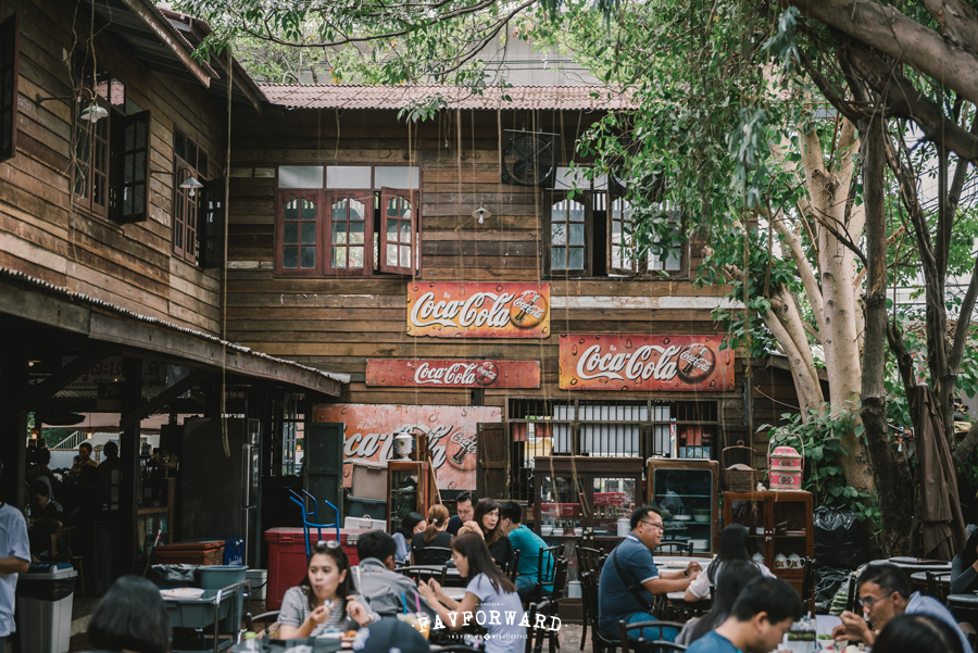 เมื่อมาถึงบ้านบางเขนก็จบพบกับอาคารพาณิชย์หลังใหญ่สองชั้นที่โดดเด่นและมีเสน่ห์ด้วยไม้เก่ากับรูปทรงของอาคารเก่า อาคารหลังนี้จัดเป็น ‘ศูนย์อาหาร’ ให้เราได้อิ่มท้องก่อนเดินชมพิพิธภัณฑ์ โดยอาหารของที่นี่เป็นเมนูคุ้นเคยที่มีให้เลือกชิมตั้งแต่หมูสะเต๊ะ แกงมัสมั่นเสิร์ฟพร้อมข้าวสวยร้อนๆ ขนมเบื้องไข่ ส้มตำรสแซ่บ ผัดไทยโบราณ เป็นต้น โดยมีโต๊ะเก้าอี้ให้นั่งทั้งแบบเอาท์ดอร์ที่ร่มรื่นด้วยต้นไม้ใหญ่แผ่กิ่งก้านให้ร่มเงาและอินดอร์ใต้อาคารหลังเก่านี้ เมื่อเดินลึกเข้าไปอีกนิดก็จะพบกับ ‘ร้านจำหน่ายของที่ระลึก’ แน่นอนว่าของที่จำหน่ายก็มีทั้งสินค้าดีไซน์วินเทจ โดยเฉพาะสินค้าพิเศษจากเครื่องดื่มโค้ก และตู้โชว์ไซส์ใหญ่ที่วาง Bearbrick หน้าโหดเอาไว้มากมาย