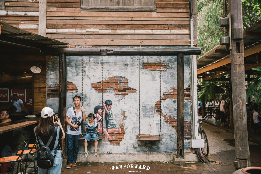 จุดเด่นที่น่าสนในอีกอย่างของบ้านบางเขนคือ ‘กราฟฟิตี้’ หรือศิลปะบนกำแพงที่มีอยู่กระจัดกระจายทั่วทั้งพื้นที่ให้เราตามเก็บถ่ายรูปให้ครบทุกมุม ไม่ว่าจะเป็นกราฟฟิตี้ที่มีชิงช้าให้เราขึ้นไปโพสต์ท่า กราฟฟิตี้เครื่องดื่มโค้กกับนางแบบวินเทจ กราฟฟิตี้แม่ค้าที่หลบอยู่หลังโอ่ง เป็นต้น รวมทั้งผนังอิญมอญสีส้มอิฐที่โดดเด่นด้วยป้ายโฆษณาสีแดงของเครื่องดื่มโค้กที่กลายเป็นมุมมหาชนที่ต้องถ่ายรูป ดังนั้นในช่วงวันหยุดที่ไม่รู้จะไปไหนดี ก็ให้บ้านบางเขนเป็นหนึ่งในตัวเลือก โดยเฉพาะใครที่อยากฝึกปรือฝีไม้ลายมือในการถ่ายภาพ บ้านบางก็เป็นสนามฝึกที่ดี
