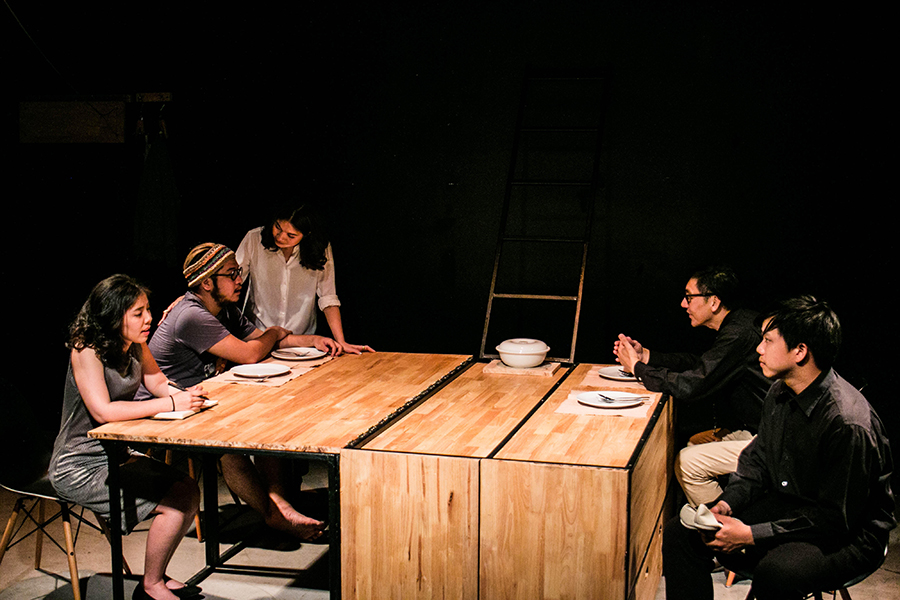 “แล้วที่ต้องเป็น 2 ภาษาเพราะบทดั้งเดิมเป็นภาษาอังกฤษ แล้วถ้าจะไม่ทำตัวบทดั้งเดิมเลยก็คงจะรู้สึกประหลาด ทั้งๆ ที่ภาษาดีมาก ฉลาด คม และสะใจ พอแปลเป็นภาษาไทยแล้ว ก็มีบางอย่างที่ให้ได้ไม่เท่าภาษาอังกฤษ เลยตัดสินใจว่าจะทำ 2 คลาส ช่วยกันเล่น เหมือนสองเรื่องในเรื่องเดียวกัน ที่มากกว่าเรื่องเดียวกันแต่คนละภาษา ส่วนนักแสดงทุกคนที่แคสมา แฮปปี้มาก เพราะเรื่องและบทมันค่อนข้างซับซ้อน”