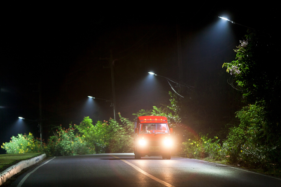 สุริยา – คนขับรถตุ๊กตุ๊กรับจ้างย่านหาดกะรน หนึ่งในแหล่งท่องเที่ยวของจังหวัดภูเก็ต เป็นอีกหนึ่งคนที่ได้รับผลกระทบโดยตรงจากไฟถนนที่ไม่เพียงพอ ในทุกๆ วัน สุริยาเริ่มงานรับส่งนักท่องเที่ยวตั้งแต่ 8 โมงเช้าจนถึงสี่ทุ่ม แม้เขาจะชื่นชอบอิสระในอาชีพ แต่ความกังวลที่มาพร้อมกับเส้นทางที่ขาดแสงสว่างก็ยังเป็นอุปสรรคที่เขาต้องพบในทุกๆ วัน “ผมชอบชีวิตที่นี่เพราะมันอิสระดี ชายหาดก็สวย” สุริยาเล่า “แต่ถนนมืดๆ บางทีก็อันตราย”