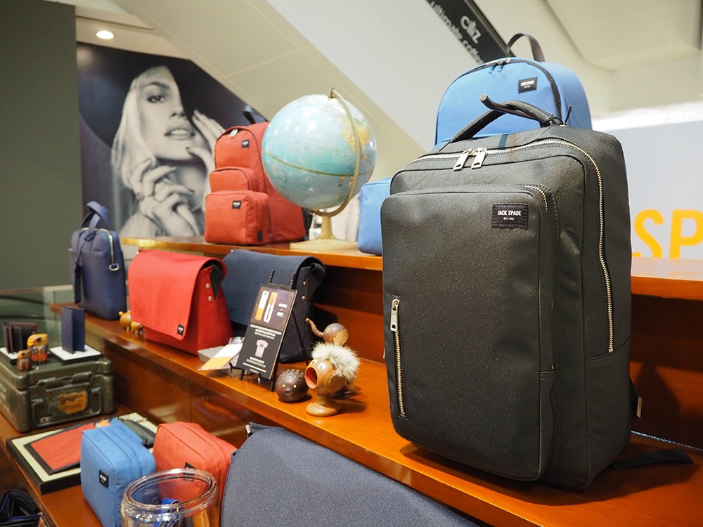 Jack Spade จัดเต็มบรรดาสินค้ากระเป๋าและเครื่องประดับจากคอลเล็คชั่นฮอลิเดย์ 2016 อาทิ กระเป๋าไนลอนกันน้ำ โดดเด่นด้วยเฉดสีน้ำเงินและสีแดงน้ำหนักเบาที่มีให้เลือกทั้งแบบทรงเมสเซนเจอร์ เป้สะพายหลัง และกระเป๋าเอกสารทำจากหนัง Saffiano ซึ่งมีจำหน่ายเฉพาะที่ป๊อปอัพสโตร์เท่านั้น