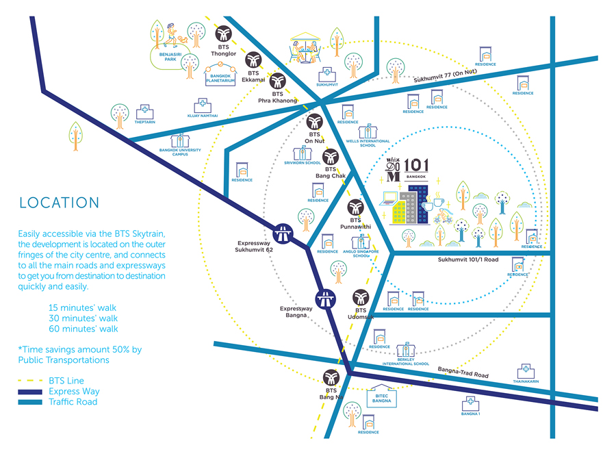WHIZDOM 101 โครงการมิกซ์ยูสบนถนนสุขุมวิทตอนปลาย บริเวณสุขุมวิท 101 บนเนื้อที่ก่อสร้าง 43 ไร่ โดยบริษัท แมกโนเลีย ควอลิตี้ ดีเวล็อปเม้นต์ คอร์ปอเรชั่น จำกัด (MQDC) โดดเด่นด้วยการผสมผสานพื้นที่ค้าปลีกเข้ากับธรรมชาติและเทคโนโลยี เพื่อสร้างสรรค์พื้นที่สำหรับชีวิตประจำวันที่สมบูรณ์แบบที่สุดสำหรับคนเมืองรุ่นใหม่ ด้วยงบลงทุนกว่า 30,000 ล้านบาท พร้อมเปิดให้บริการเดือนตุลาคม 2561