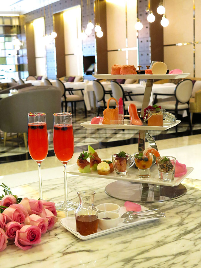 Valentines AfternoonTea (1,150++) ซึ่งคัดวัตถุดิบสีชมพูแสนอร่อย ทานพร้อมสปาร์คกิ้งโรเซ่ค๊อกเทล