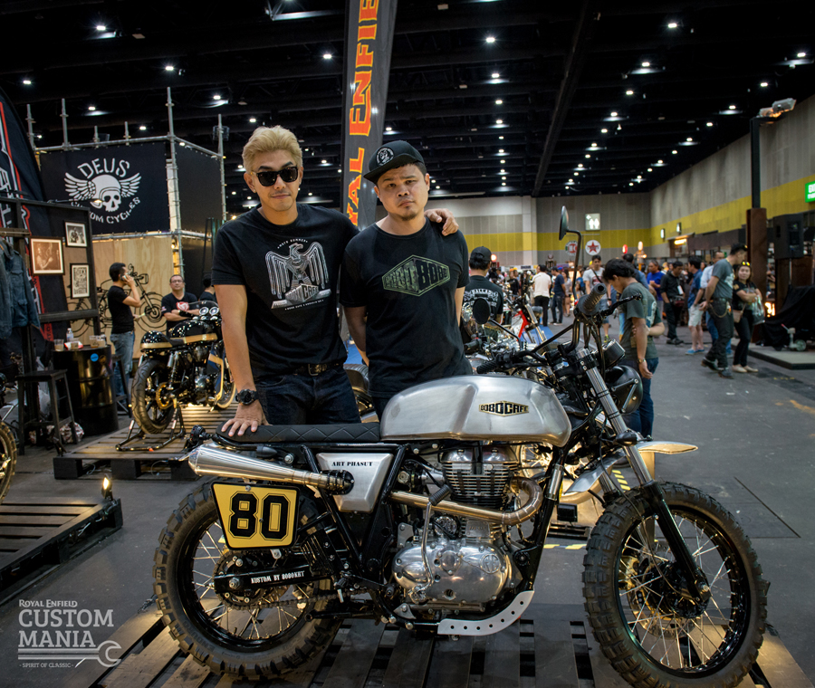 เมื่อวันที่ 31 พฤษภาคมที่ผ่านมา “รอยัล เอนฟิลด์” ชวน 4 เซเลบสาวกไบค์เกอร์ ได้แก่ นักแสดงหนุ่มลูกครึ่งสุดหล่อ มาริโอ้ เมาเร่อ, พระเอกมาดบู๊ อาร์ต พศุตม์ บานแย้ม, นักร้องหนุ่มมาดเซอร์ เป้ อารักษ์ อมรศุภศิริ และนักร้องสาวขวัญใจเด็กแนว ส้ม อมรา ศิริพงษ์ ร่วมกับสำนักแต่งมอเตอร์ไซค์มากฝีมือ 4 แห่ง คือ 8080 คาเฟ่ (8080 Café) เค-สปีด (K-Speed), คิกเกอร์ (Kicker) และแฟตบอย ดีไซน์ (Fat Boy Design) แปลงโฉมมอเตอร์ไซค์คู่ใจ และยกขบวนมาโชว์ครั้งแรก ณ งาน Bangkok HotRod 2017 ไบเทค บางนา
