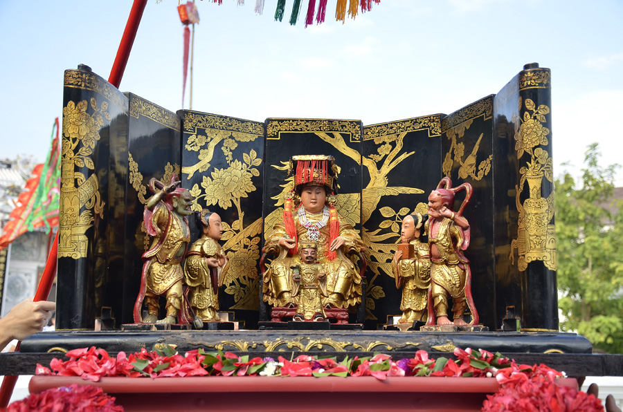 5. เจ้าแม่หม่าโจ้ว (คลองสาน) 3 องค์ 3 ปาง ประทับเกี้ยว 3 หลัง ร่มฉัตร 3 คัน โคมไฟ 2 อัน