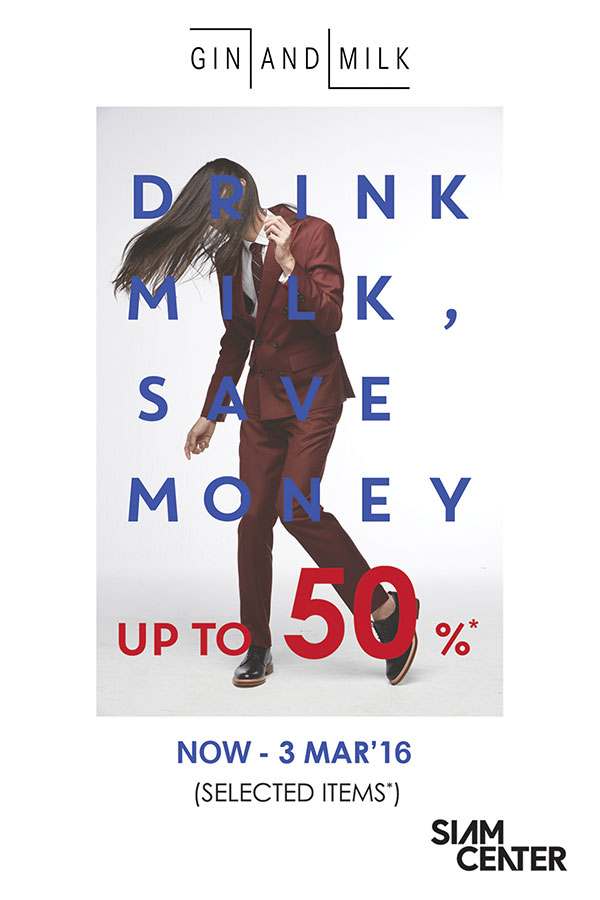GIN AND MILK (จิน แอนด์ มิลค์) เมนส์แวร์มัลติแบรนด์สโตร์ เอาใจหนุ่มนักช้อปด้วยโปรโมชั่นสุดร้อนแรงประเดิมต้นปี DRINK MILK, SAVE MONEY (ดริ้งค์ มิลค์ , เซฟ มันนี่) ลดสูงสุด 50%
