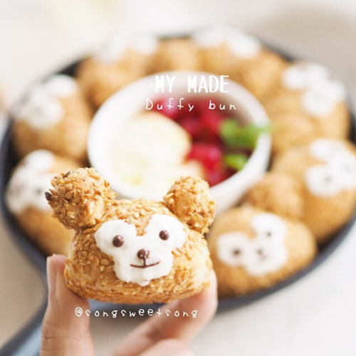 ถ้าสองไม่ได้ดูว่าในตู้เย็นเหลืออะไรบ้าง สองก็จะได้ไอเดียจากคาแรคเตอร์ของตัวการ์ตูน อย่างตัวนี้มีคาแรคเตอร์แบบฟูๆ พองๆ เราก็เลือกทำขนมออกมาให้ดูพองๆ คือสองก็จะดูว่าทำขนมอะไร ต้องใช้ส่วนผสมไหนที่ทำให้ได้ขนมลุคนี้ เพราะแต่ละเมนูมันไม่จำเป็นต้องทำตามสูตรแบบเป๊ะๆ เวลาทำไปเรื่อยๆ เราก็จดเอาไว้ เวลาจดไว้เราก็ได้สูตรใหม่ๆ หรือภาคตกแต่งเราก็ปรับไปได้เรื่อยๆ